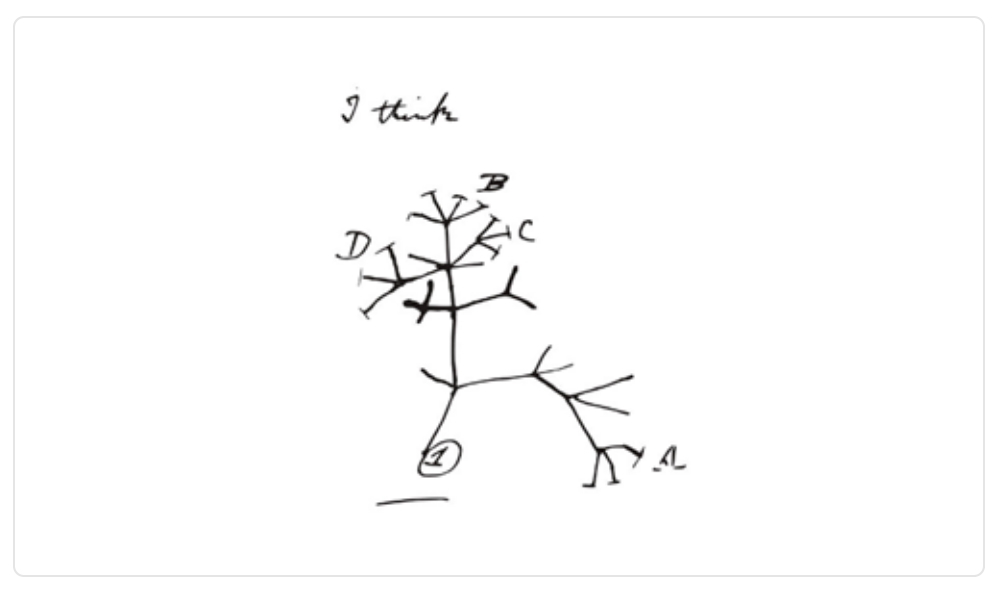 Imagen 1. Dibujo de la representación de la emergencia de especies realizado por Darwin.