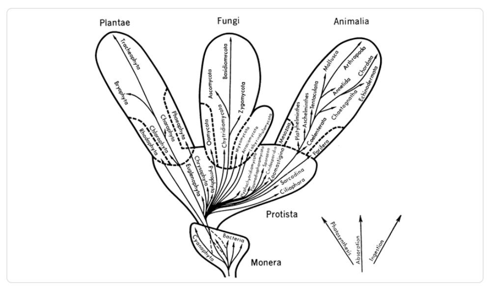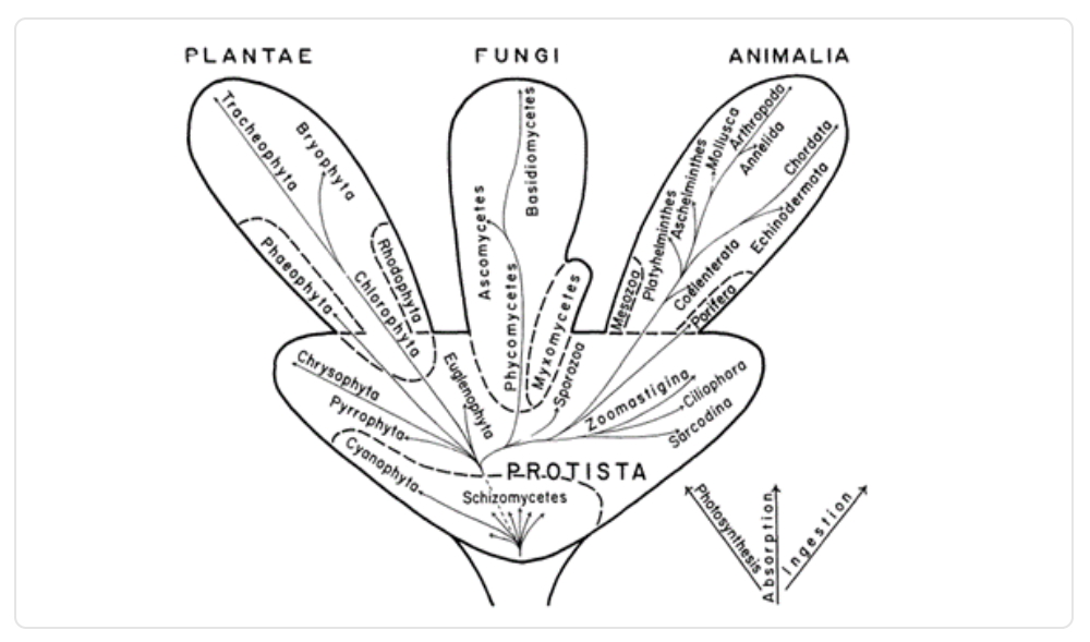 Imagen 4. Propuesta de la segunda clasificación de los reinos y su árbol de la vida, hecha por Whittaker.